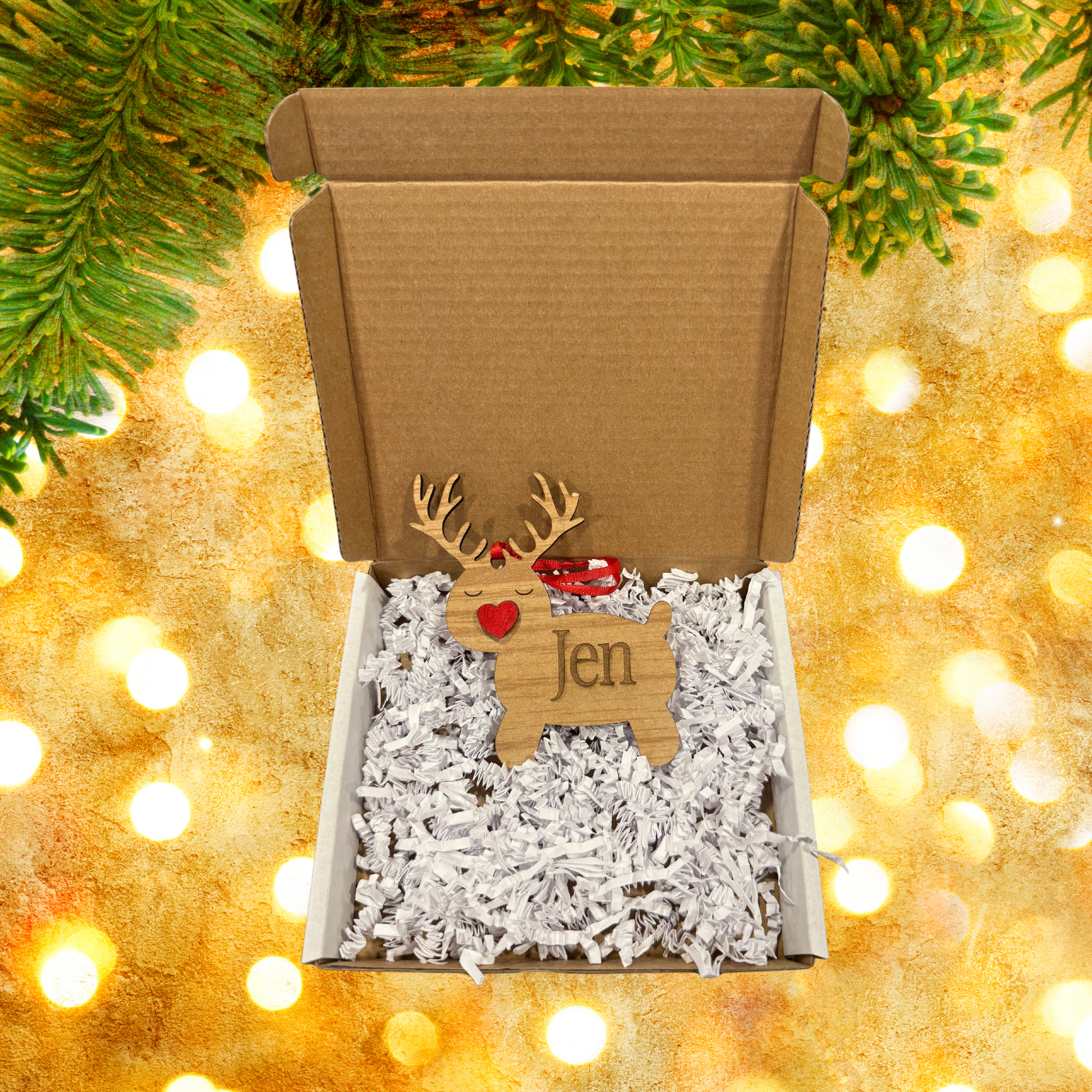 Christmas Reindeer Heart Wood Ornament: Personalized Family, Custom Name, 2025 Ornament