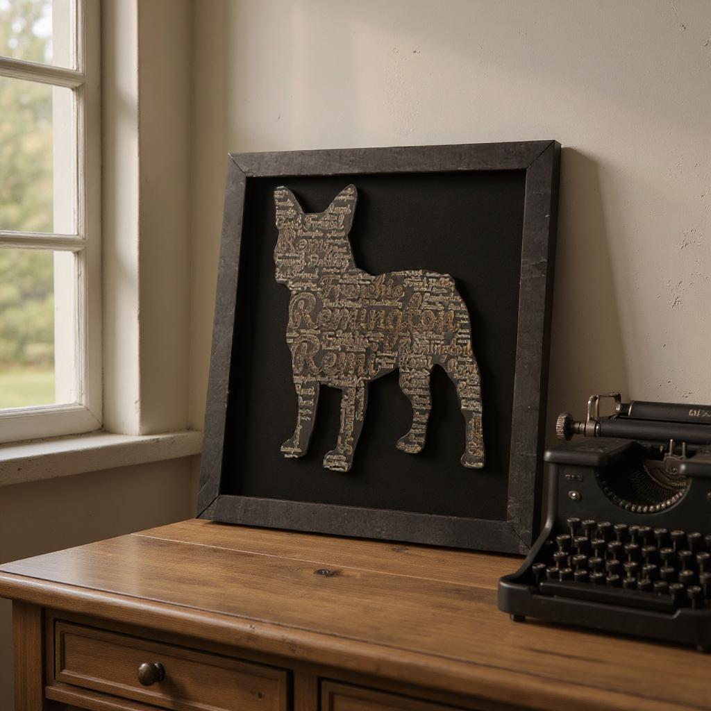 Celebrate your furry friend with a Word Cloud Dog Sign, uniquely designed with their name and breed-specific shape! Include words describing your dog such as "Energy, Zoomies, Loving, Stinky, Cuddly, Sleepy, Hungry, etc". Perfect for dog lovers, this personalized keepsake adds charm to your home or makes a thoughtful gift for pet owners. Crafted with precision, it showcases the words describing your pup making each piece as special as they are. Whether displayed on a shelf, desk, or wall, this custom dog name sign is a stylish tribute to your beloved pet.