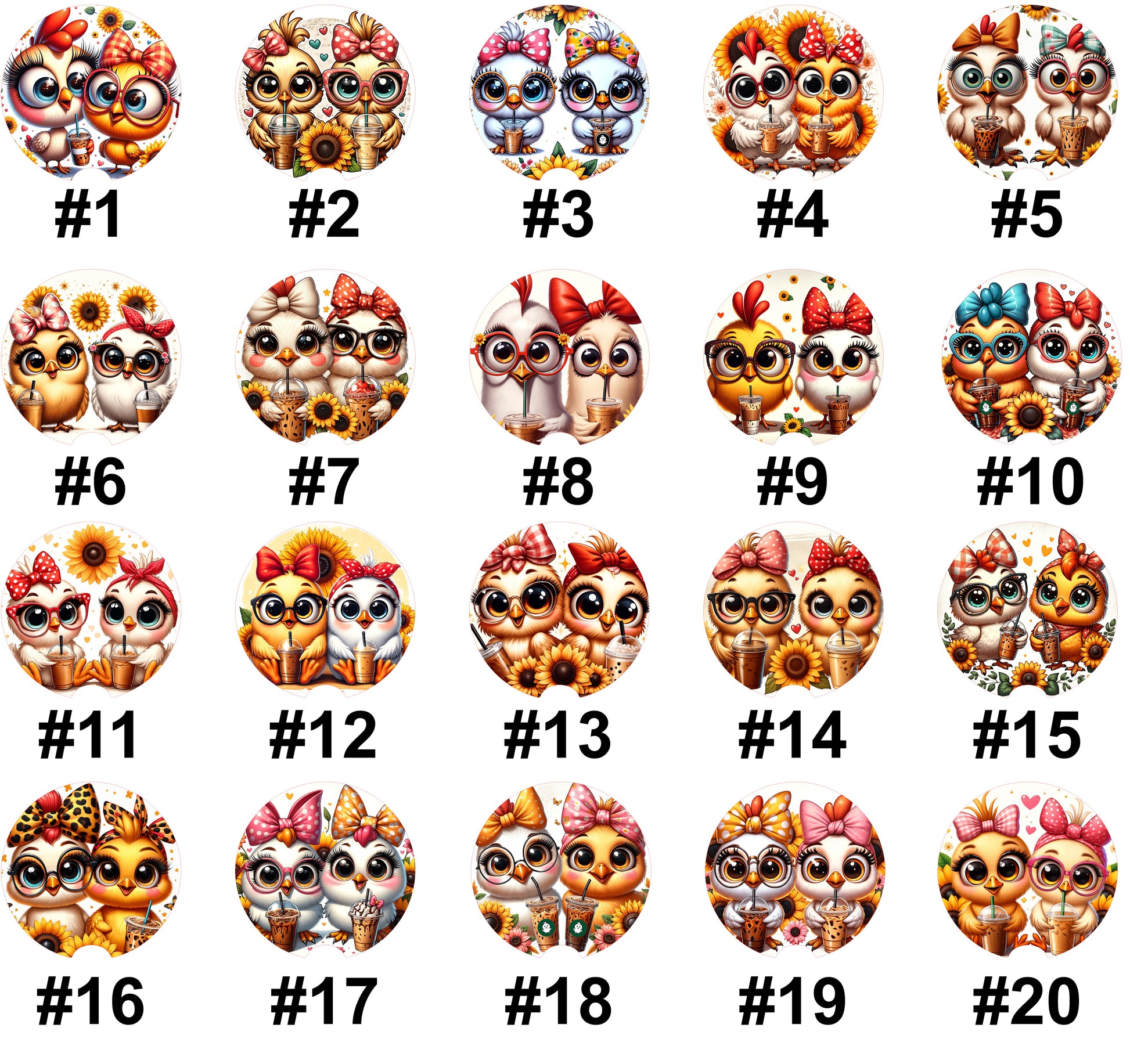 Made from durable, absorbent materials measuring just right to fit most standard cup holders, this coaster is easy to clean and built to last through all your road trips and daily commutes. Say goodbye to sticky messes and hello to a tidy, happy ride with a fun farmyard flair that pecks away boredom on the road. Grab your new favorite car accessory today and give your coffee a cozy little nest—it’s the quirky upgrade your cup holder deserves!Add a splash of farm-fresh charm to your ride with this adorable Coffee Chickens Car Coaster! Featuring cute, caffeine-fueled chickens and a rustic coffee theme, this coaster keeps your cup holders clean and dry in style. Perfect for chicken moms, farmhouse decor lovers, or anyone who enjoys a little humor with their coffee.