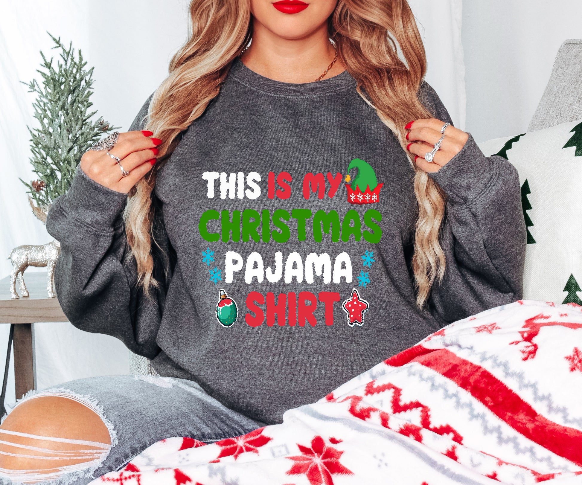 Make your holiday outfit easy with our Funny Christmas Shirt that says it all: “This Is My Christmas Pajama Shirt.” This bold Holiday Statement Tee features festive colors, playful graphics, and seasonal charm. Available in t-shirts, hoodies, sweatshirts, and youth sizes, it’s soft, comfy, and perfect for parties, gifting, or cozy lounging. With elf hats, ornaments, and snowflakes, it’s a cheerful way to show up without overthinking your look. Whether you're keeping it simple or making a statement, this shirt delivers. Limited stock; grab yours now and sleigh the season!