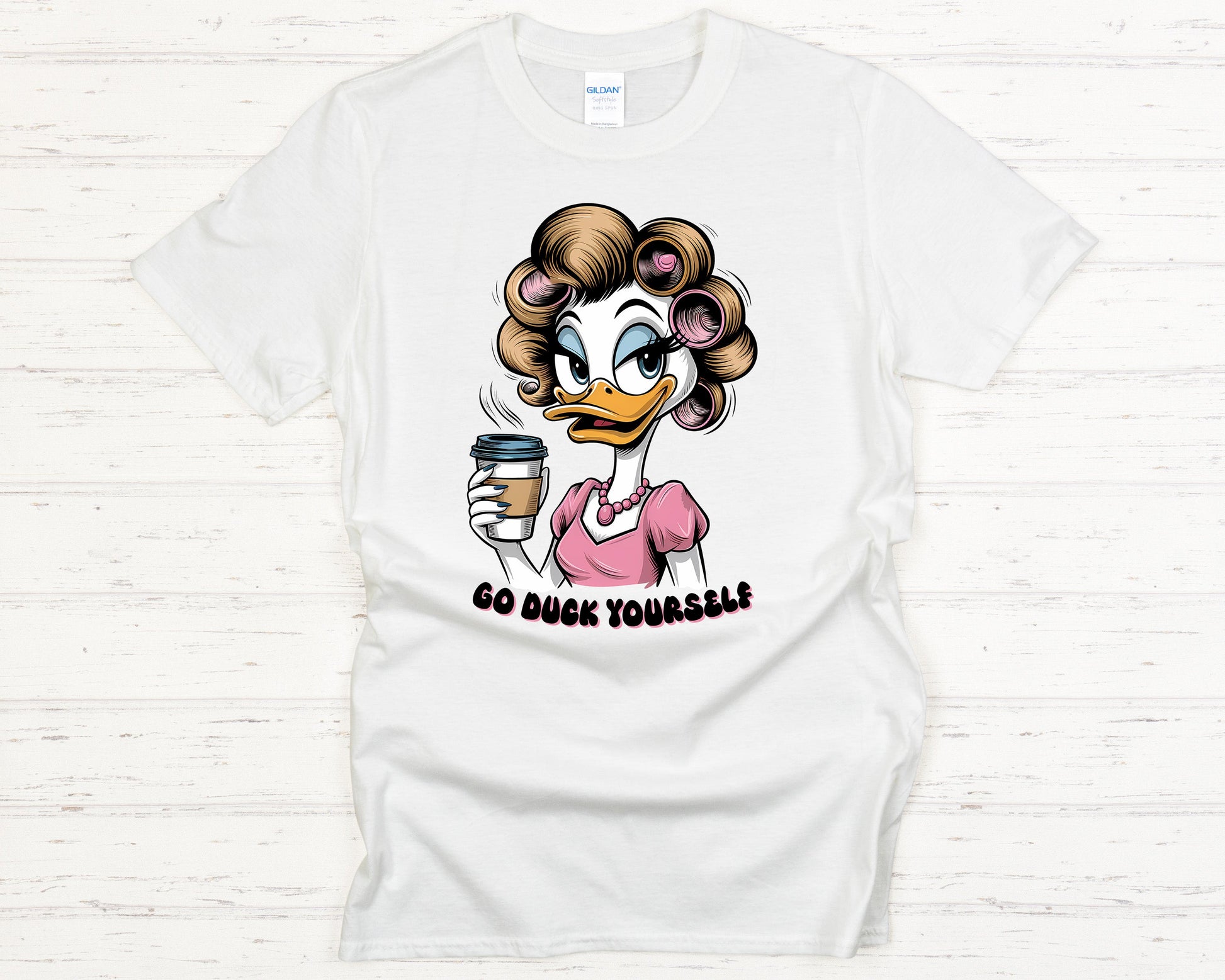 Quack up your wardrobe with this hilarious "Go Duck Yourself" tee, featuring a cheeky cartoon duck that’s impossible to ignore—perfect for animal lovers with a sarcastic streak! Crafted from soft, breathable cotton, this funny duck t-shirt combines quirky humor with comfy everyday wear that stands out in any crowd.