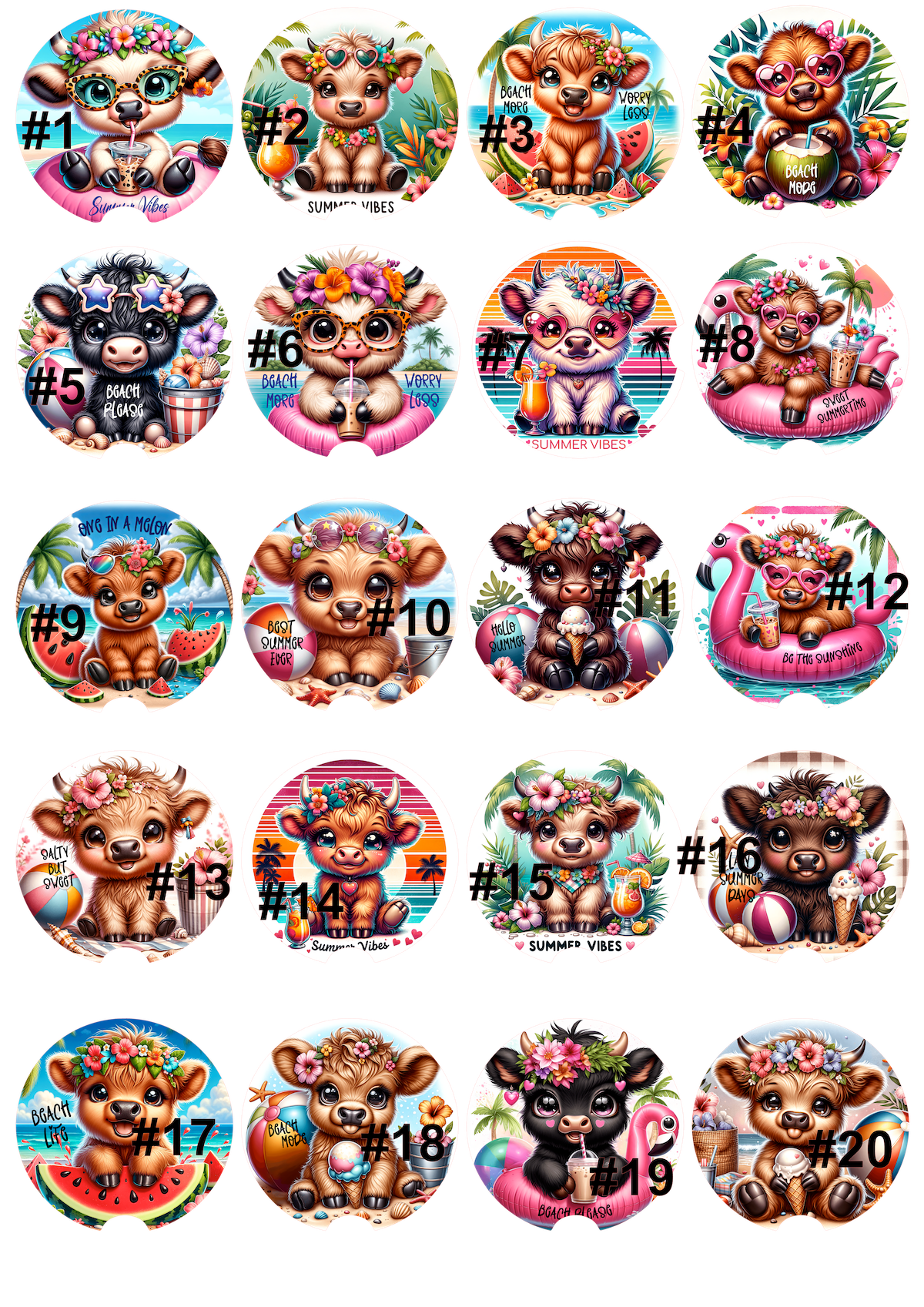 Bring a splash of whimsy to your ride with our Highland Cow Car Coasters Set of 2, featuring a beach-themed design that’s as charming as a sunny day by the shore. These cuties, showcased in the listing image with their shaggy fur and playful expressions, aren’t your average cup holder inserts—they soak up spills and keep your car comfy and clean with style that’s udderly unique.