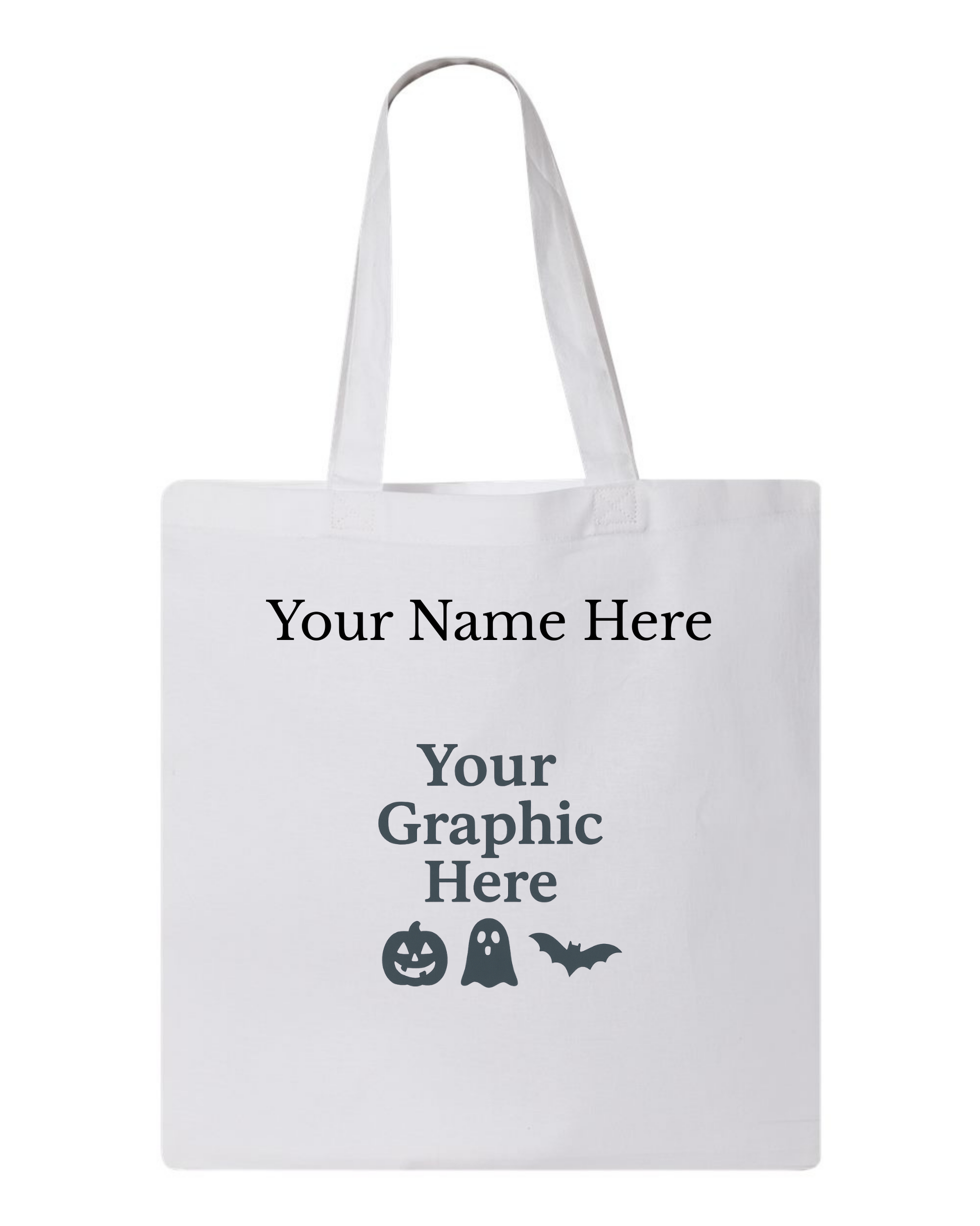 Whether you're prepping for a school party, neighborhood crawl, or spooky surprise, these custom cotton totes are the perfect Halloween companion. Choose your favorite color and personalize with a name, spooky icon, or festive graphic; witches, ghosts, pumpkins, bats, you name it!