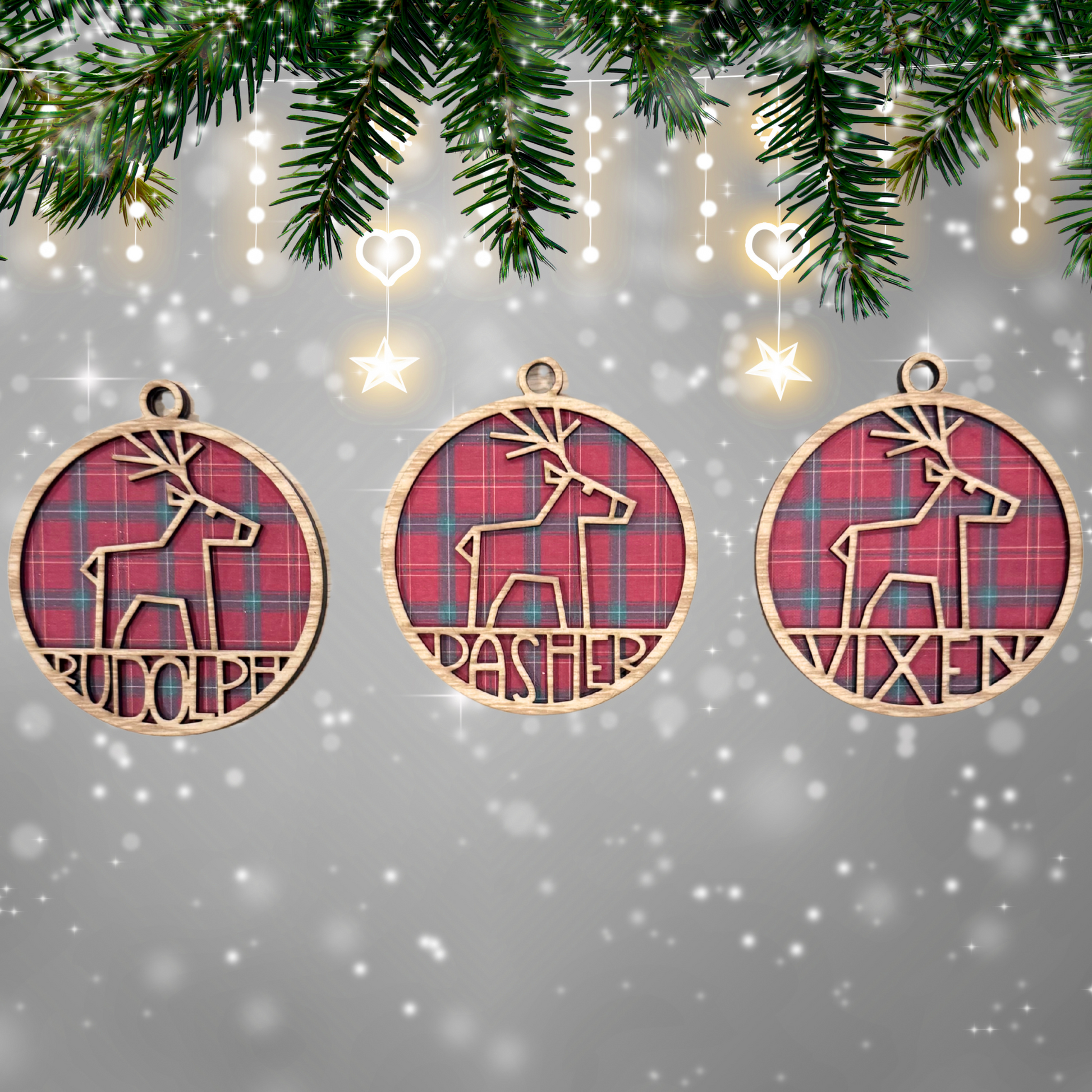 - Wooden Bauble with Reindeer names or Custom names