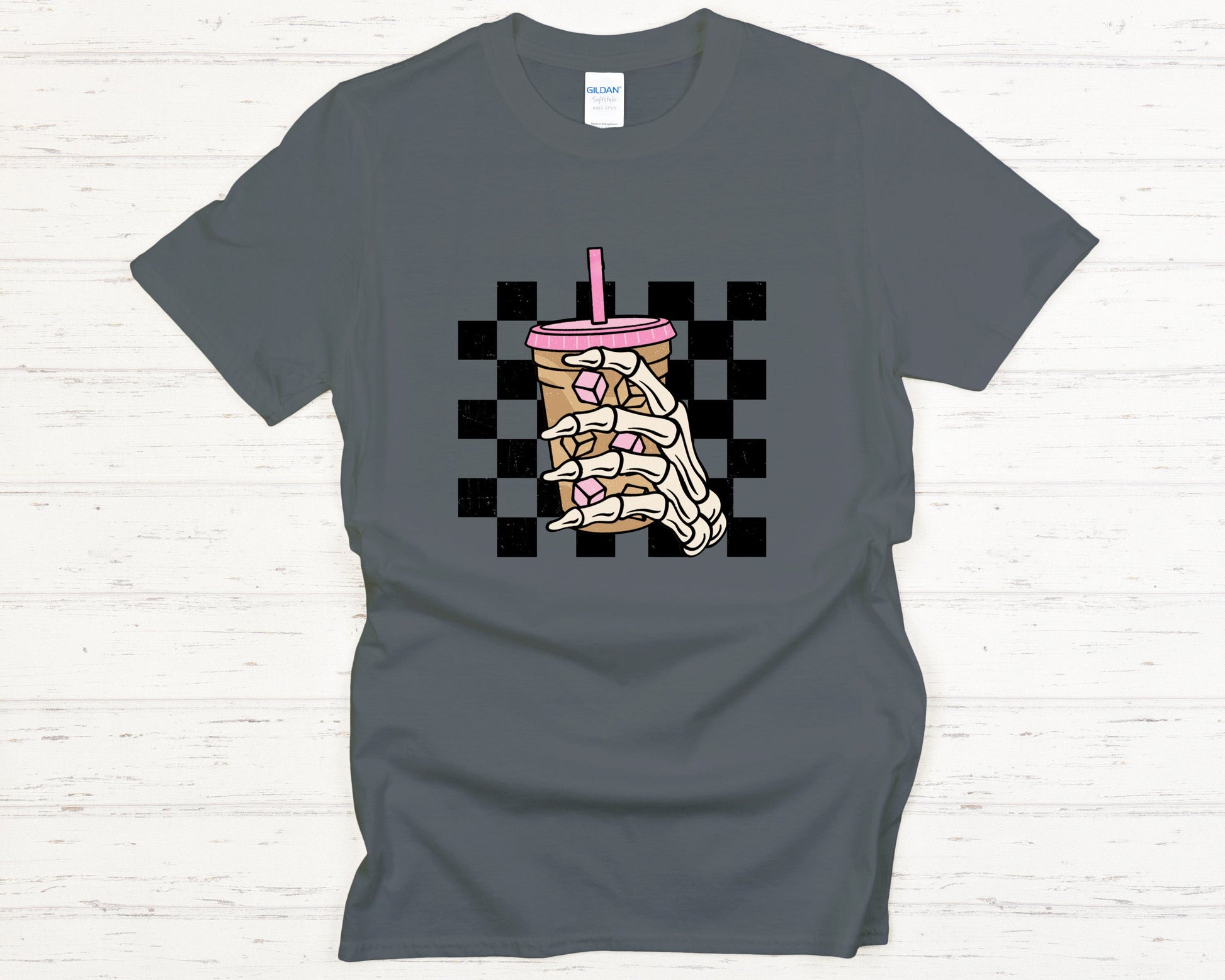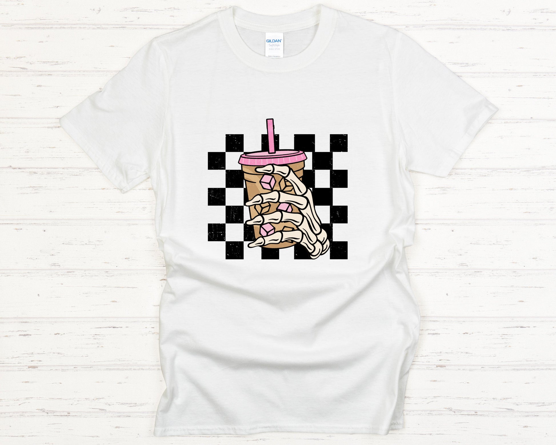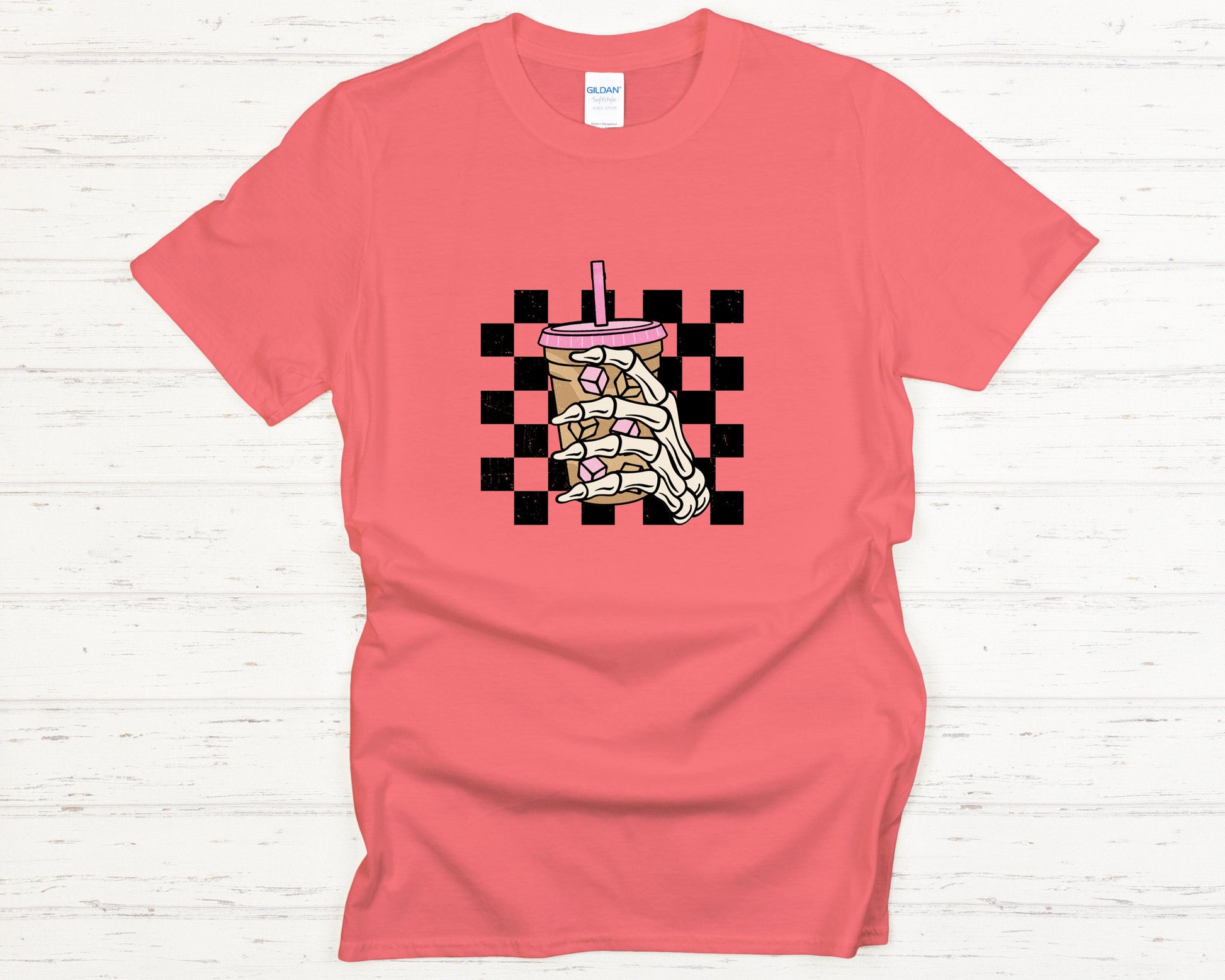 Funny Skeleton T-Shirt Summer Tee Iced Drink Graphic Halloween Shirt Colorful Creepy Cute Gildan 64000