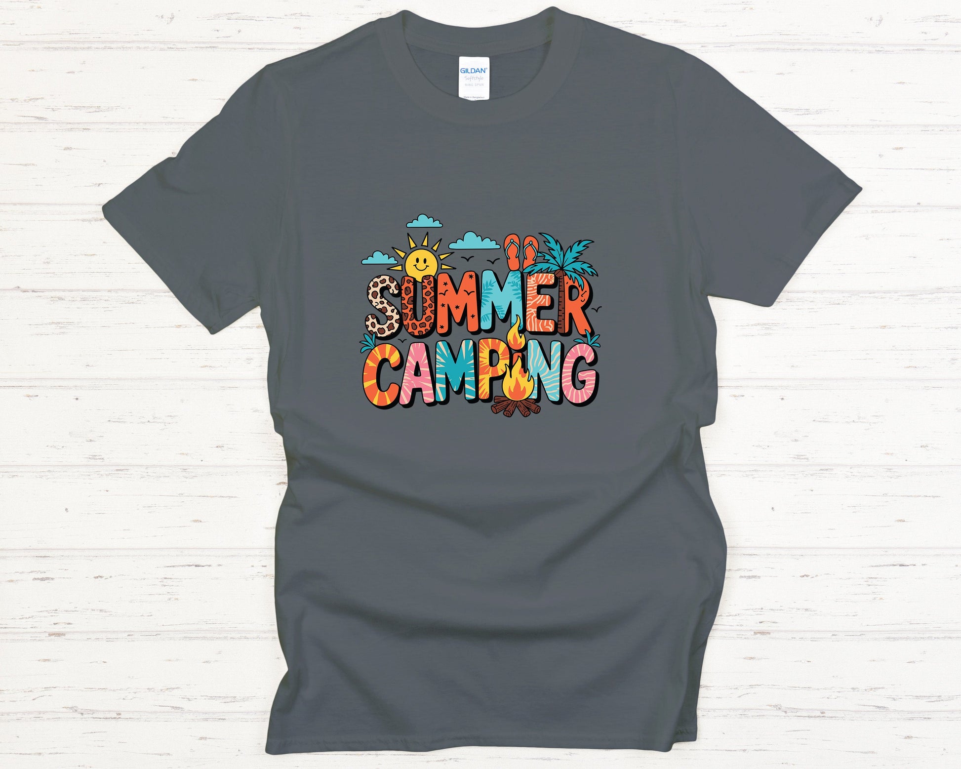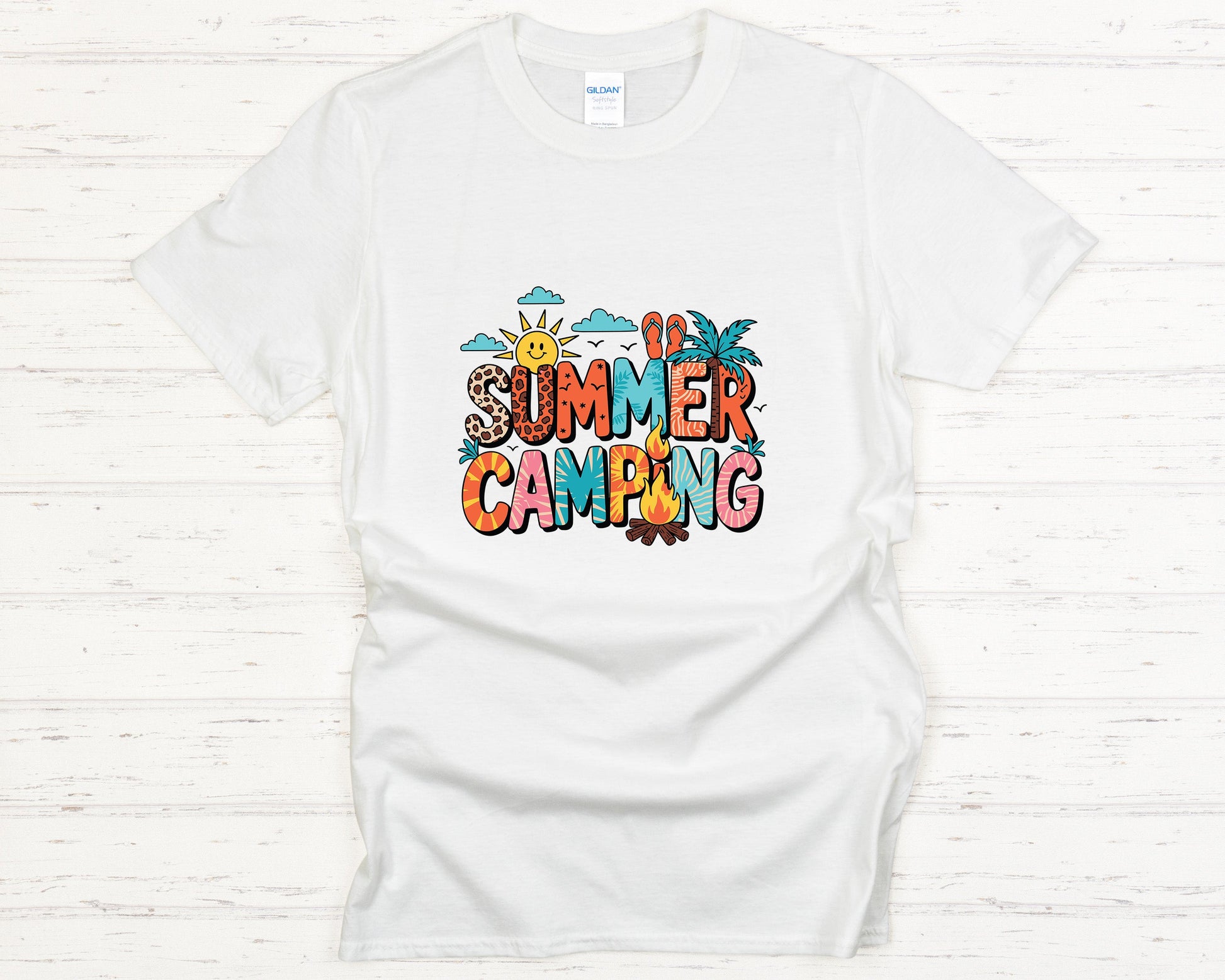 Summer Camping T-Shirt Cute Leopard Print & Tropical Graphic Tee, Outdoor Adventure Shirt, Campfire Lover Gift